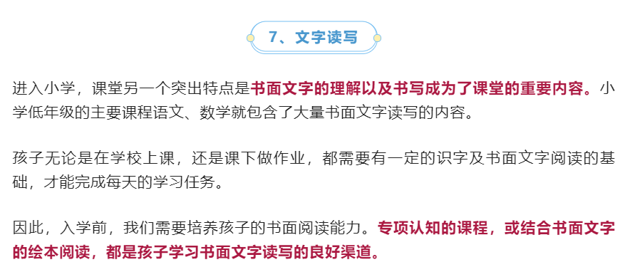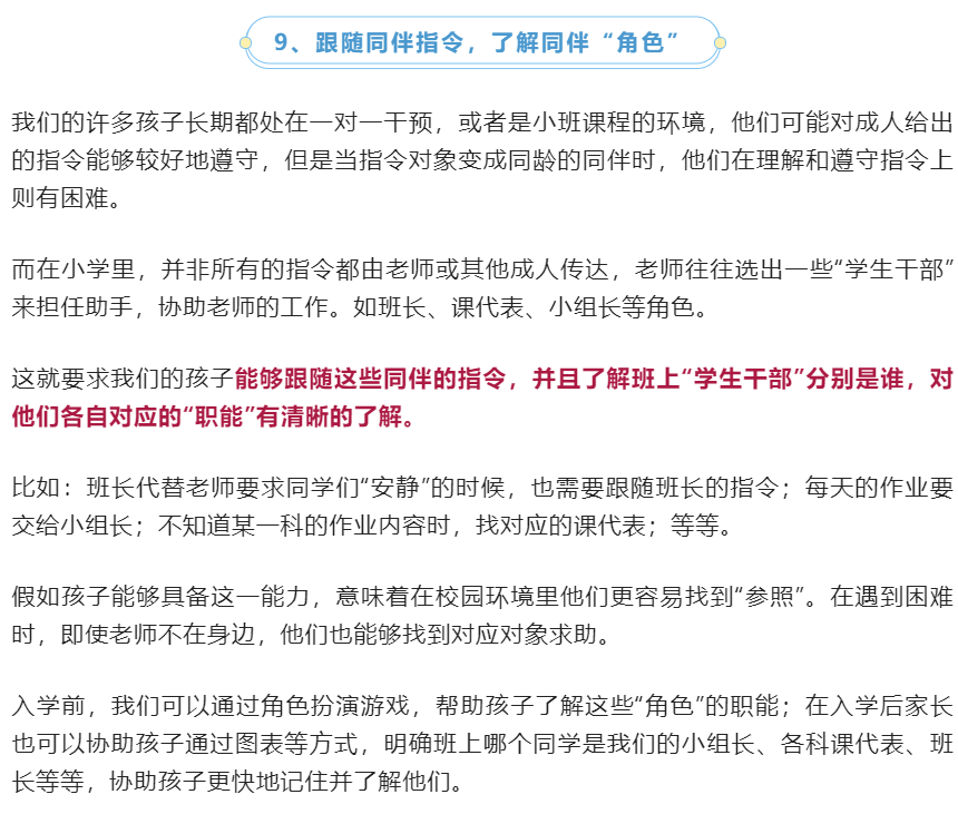 本期内容为大家带来了10条小学必备能力,结合了小学家长的访谈,结合现实入学个案以及专业意见,希望给与家长更多的思考方向。