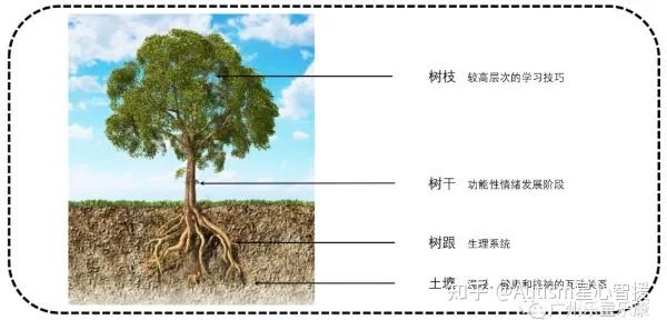 如图,格林斯潘医生以树的生长来比喻孩子的学习过程,认为茂盛的树叶需要依赖肥沃的土壤、健康的树根和树干来支持。