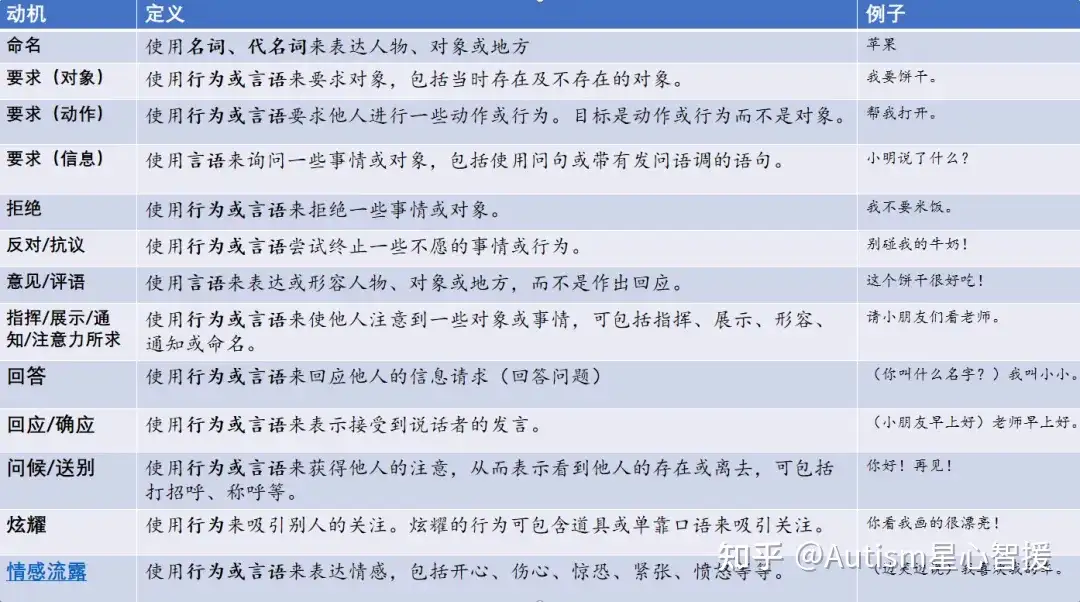 沟通动机是这个阶段的关键能力之一,这意味着大人要创造大量的沟通机会,并引导儿童使用非口语或口语的形式来进行沟通。