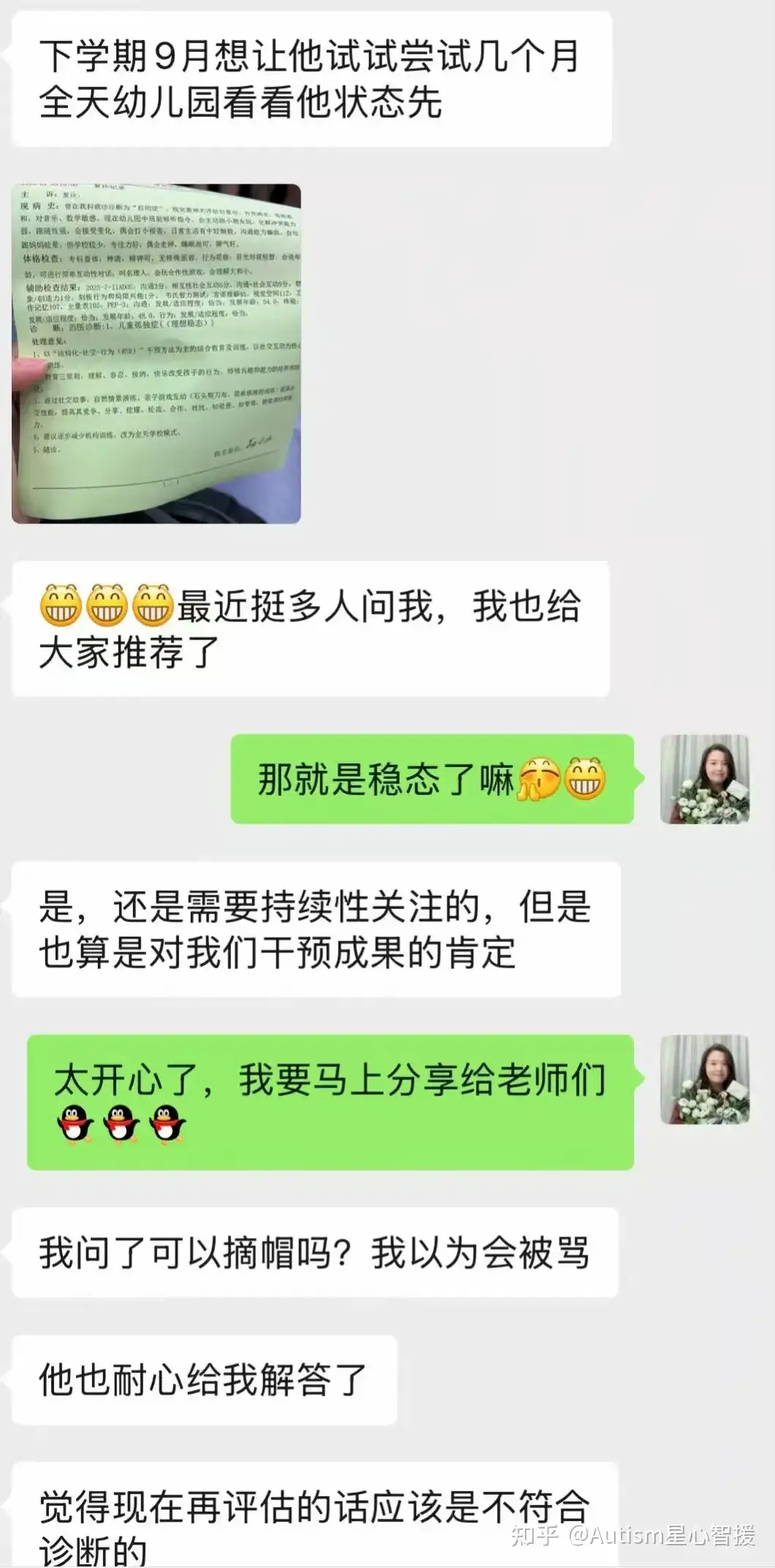 也就是说,如果曾经确诊的孩子,经过干预,已经够不上社交沟通障碍标准,也没有狭隘兴趣、刻板行为;或者这些特质仍然存在,但已经不影响其社会功能时,我们就认为这个孩子达到了“理想稳态”,可以“脱帽”了。