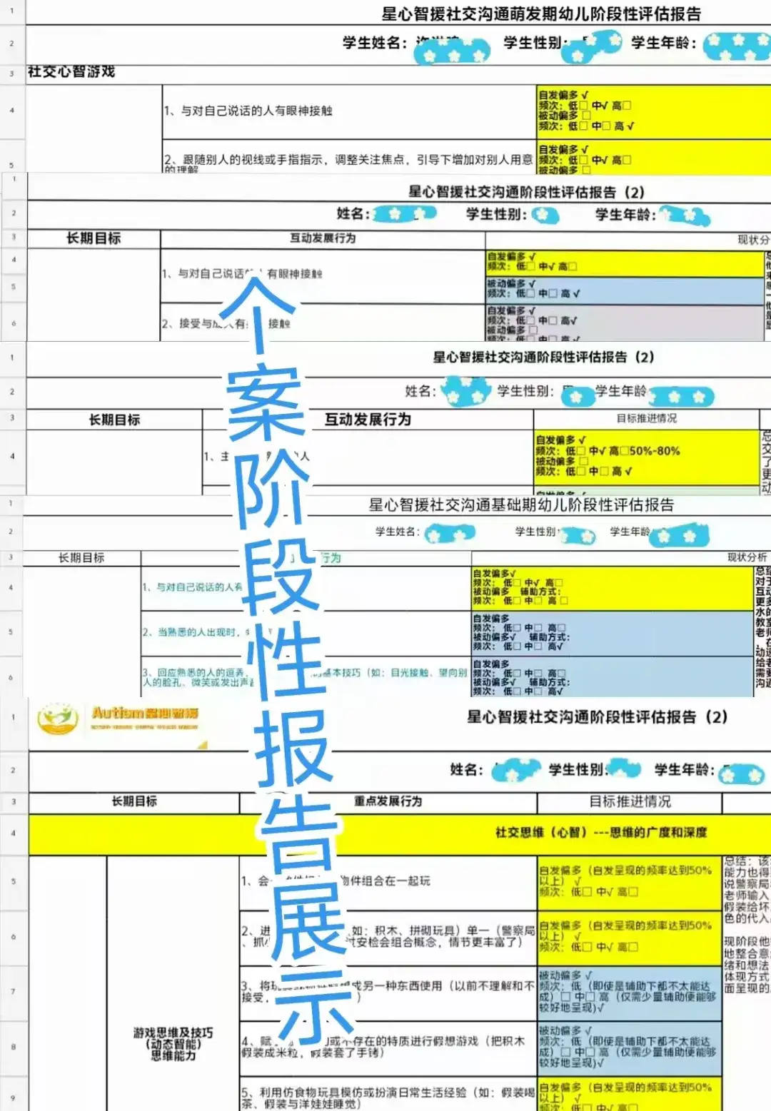 中心定期开展社交沟通阶段性评估,检视孩子目标进展状况,制定新的阶段性干预目标